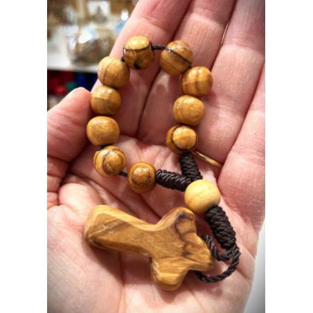 Le bois d'olivier de ce dizainier est très poli et la croix spécialement douce au toucher.