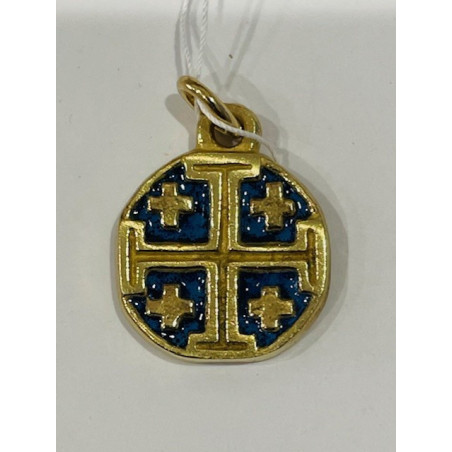 La Croix de Jérusalem pendentif ou « croix à huit pointes » ou croix du Saint Sépulcre, apparaît sur un médaillon de 2 cm, en bronze, orné d’émaux colorés.