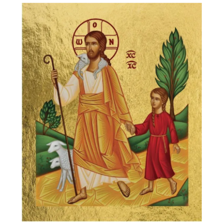 Jésus ouvre le chemin, son pas est ferme. Il regarde vers l'avenir et entraîne la petite fille à sa suite. Voici l'icône par excellence de la confiance en Dieu.