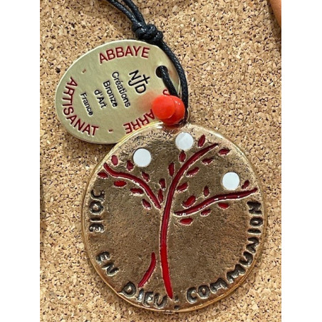 Magnifique médaillon de 5.8 cm de diamètre à offrir pour une Communion. Une inscription "Joie en Dieu : Communion" figue sur le bas du médaillon.